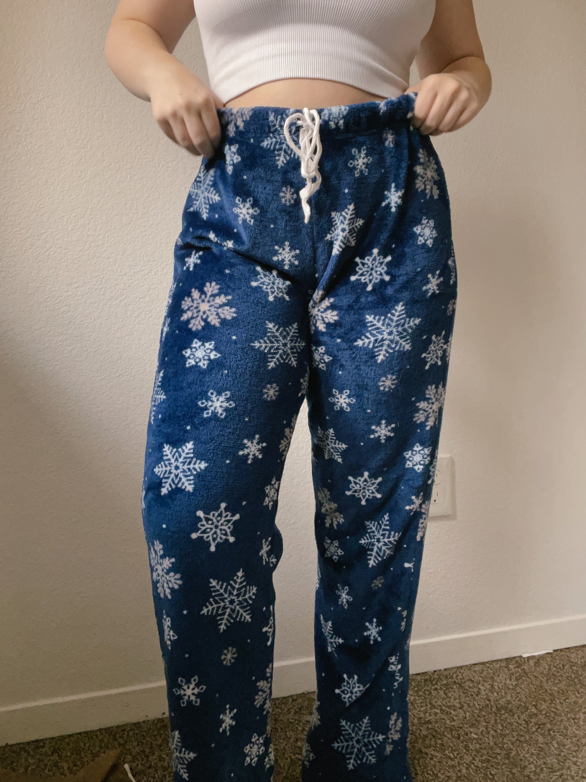 Embrace your uniqueness with our Be Yourself Dark Blue Snowflake Pajama Pants. These excellent condition pants feature a drawstring waistline for a comfortable fit and a super soft fabric that will keep you cozy all night long. The blue snowflake print adds a fun touch to your bedtime attire.